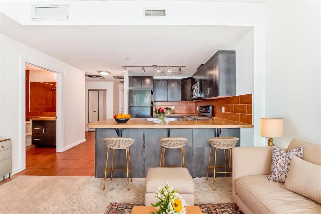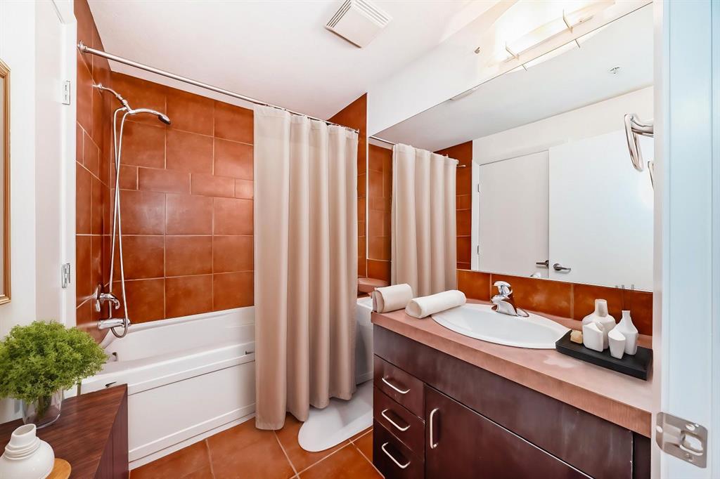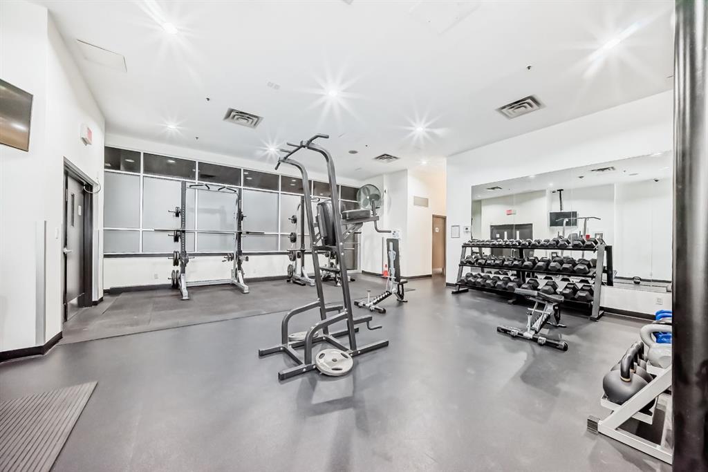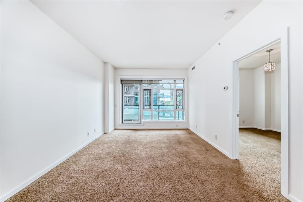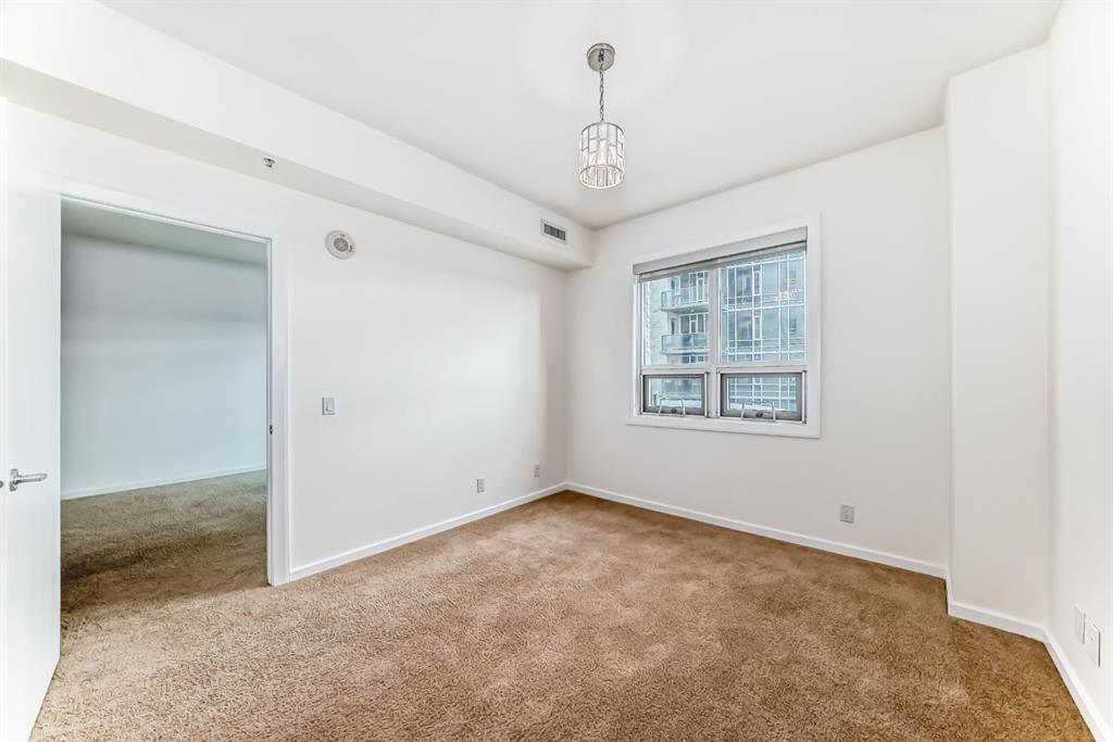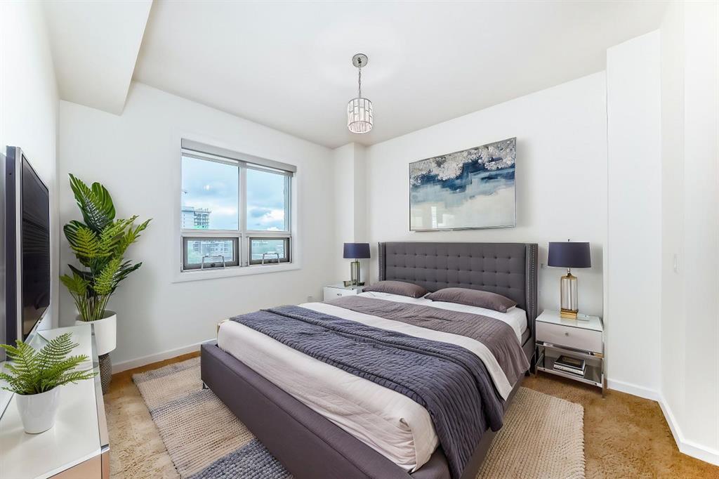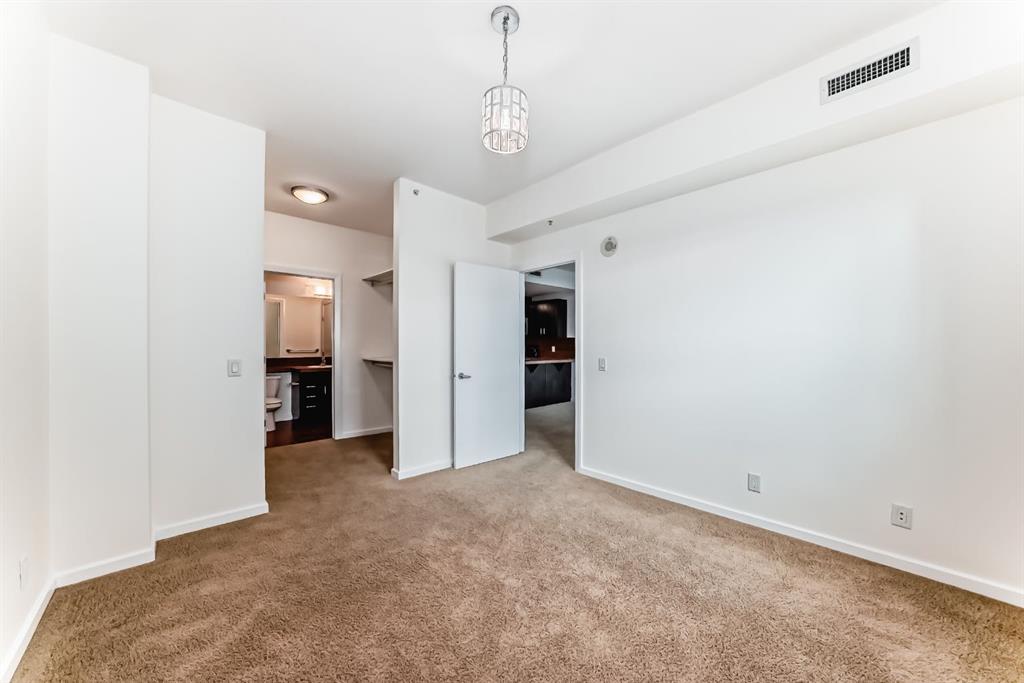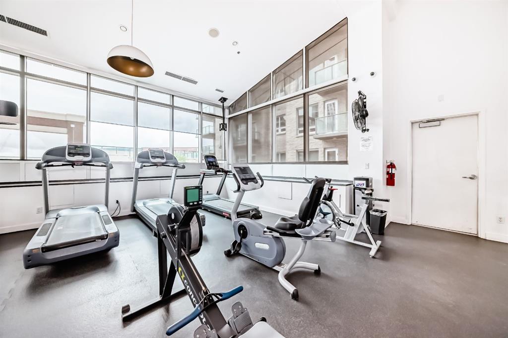Welcome home to this well-maintained southwest facing one bedroom plus den condo boasting almost 700 square feet of living space nestled in Calgary’s vibrant Beltline district. Sasso is steps away from the Stampede LRT Station and just a short walk to the Stampede Grounds, BMO Centre, Saddledome, Sunterra Market, H-mart and the bustling 17th Avenue SW. Shoppers Drug Mart is conveniently located at the base of the building, while the nearby Bow River pathways, tennis courts, and Theatre District offer ample opportunities for outdoor activities. This condo offers an open-concept layout featuring 9-foot ceilings and floor-to-ceiling windows that flood the space with natural light. Central air conditioning ensures year-round comfort, while the spacious bedroom boasts a walk-through closet leading to a full ensuite bathroom. The kitchen is equipped with ample cabinet storage and a breakfast bar, perfect for casual dining. Adjacent dining and living areas open to a roomy deck with a BBQ gas line, ideal for hosting or simply enjoying the downtown views. Sasso is an 18+ building and offers an amenity-rich lifestyle, including a building concierge, a fully equipped fitness center with cardio and weights, a hot tub, theatre room and a games room with a pool table. This condo has been freshly painted and comes complete with a titled parking stall in the heated underground parkade with visitor parking and an assigned storage locker. Call today for your private showing!