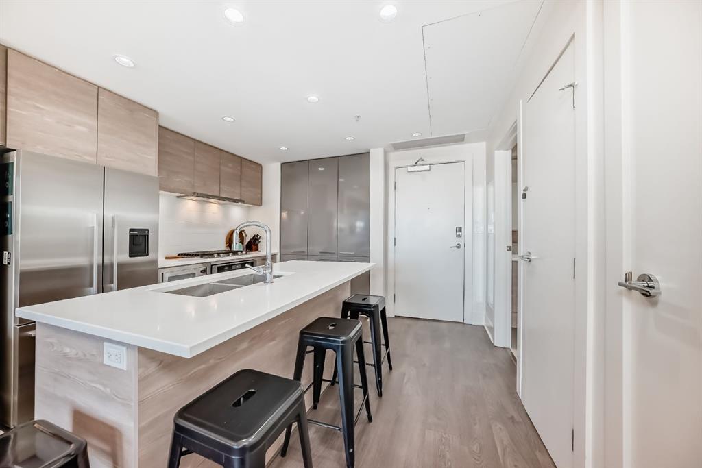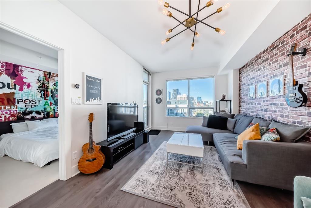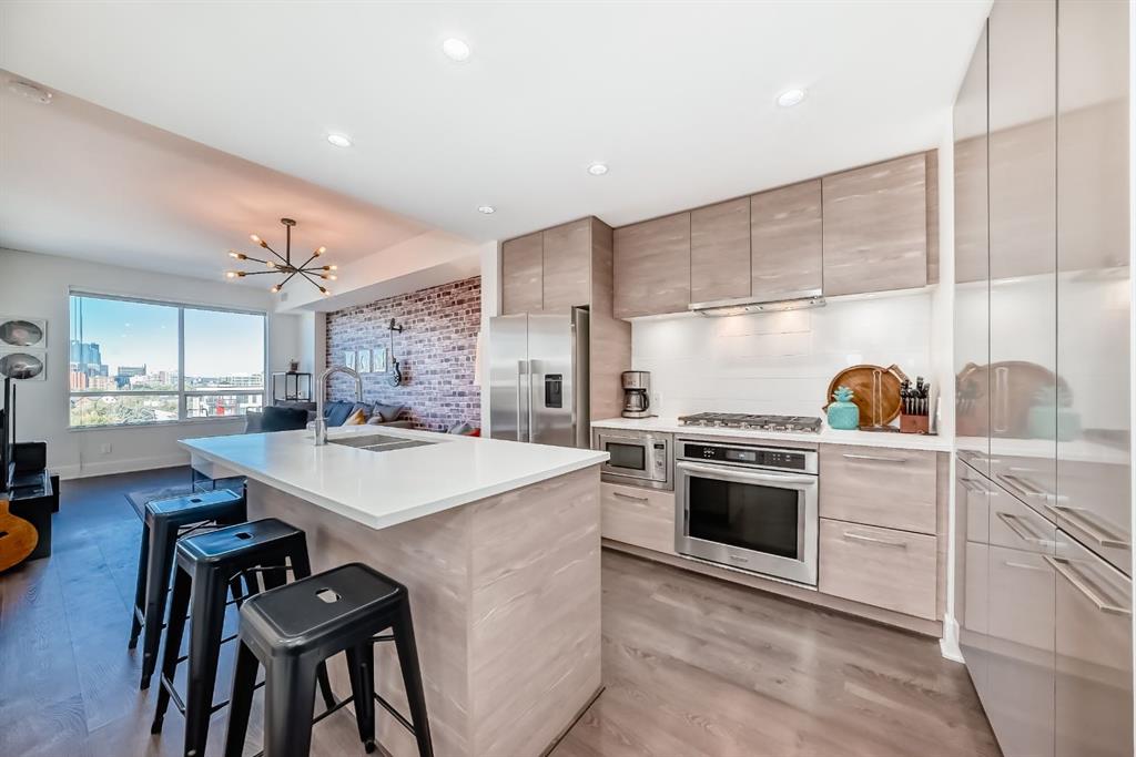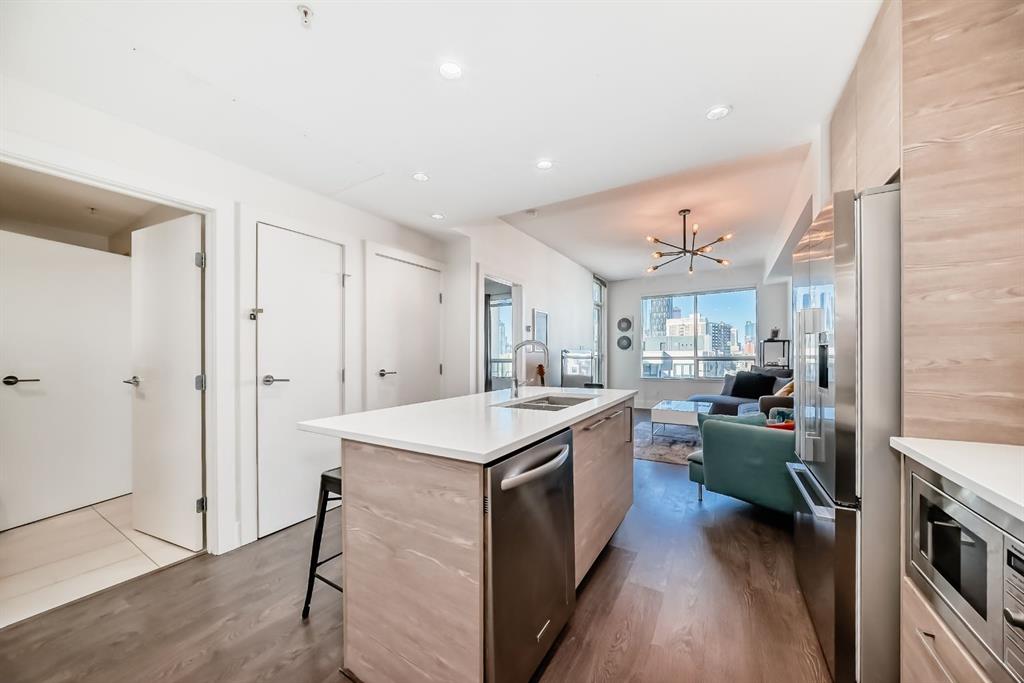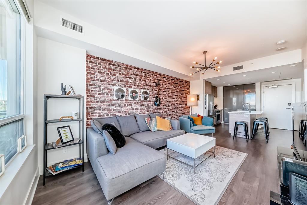 Welcome to this stylish west-facing 1-bedroom, 1-bathroom condo offering stunning downtown views, ideally located just steps from the C-Train. Whether you're a first-time homebuyer or an investor, this property presents an exceptional opportunity — currently operating as a successful short-term rental with a 30-day minimum stay. The condo comes fully furnished, with all modern and thoughtfully selected decor included in the sale, making it completely move-in or rental ready. Inside, you'll find a bright and open floor plan that seamlessly connects the living area to a sleek, modern kitchen featuring stainless steel appliances and contemporary cabinetry. Comfort is enhanced with central air cooling, and convenience is at your fingertips with an underground parking stall and a storage locker. The building offers a well-rounded lifestyle with exclusive access to a fully equipped gym, a beautifully designed party room, a comfortable guest suite for visitors, a dog wash station, and a community garden for those with a green thumb. This home effortlessly combines style, comfort, and location — just minutes from the heart of downtown. Don’t miss your chance to own this turnkey gem. Call today for your private showing!